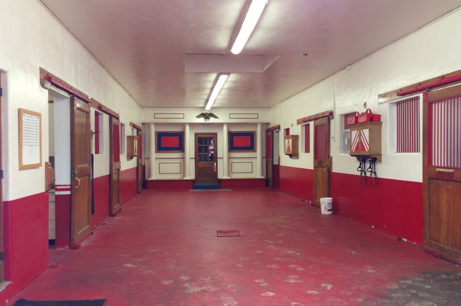 Horses rule here. Horses have right of way. It is 100% human responsibility at all times to get out of the way of horses at all times — horses aren’t led around anything or asked to stop for sake of a pedestrian. Chris and I learned which side to get to as horses being hotwalked came around corners counter clockwise through the shed row every few minutes.