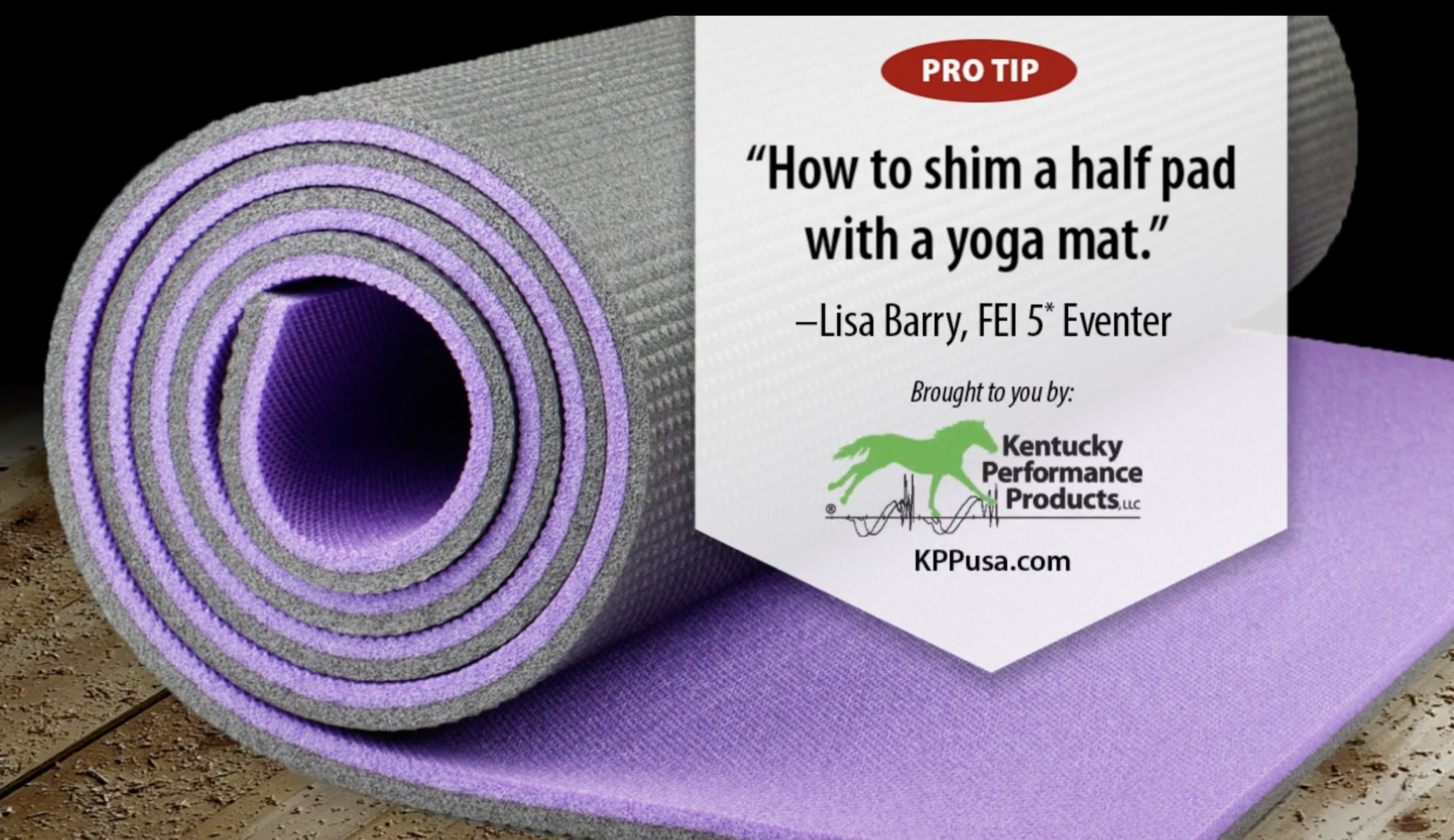 Kentucky Performance Products rider Lisa Barry is here with this week’s pro tip — how to shim a half pad with a yoga mat.