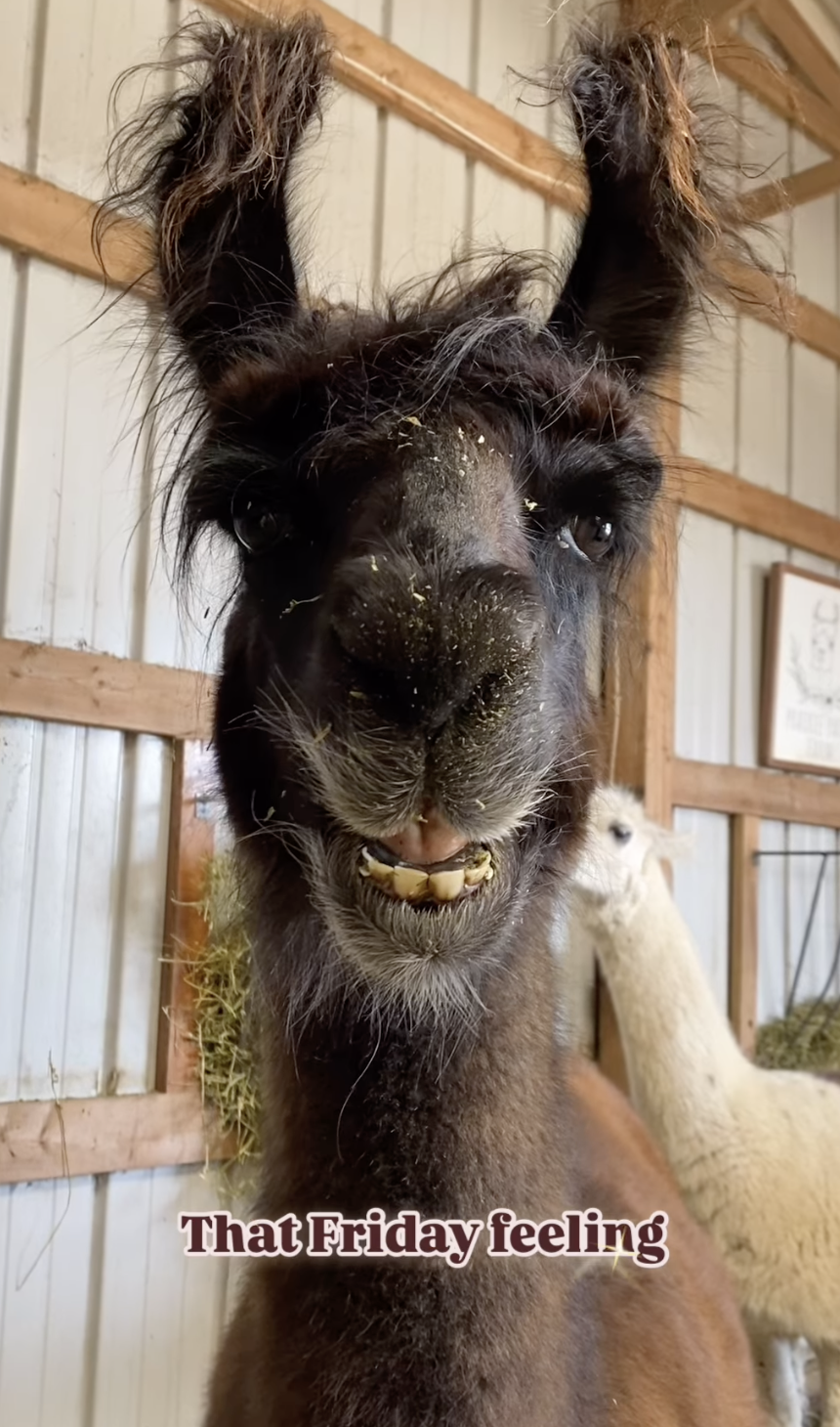 This llama has the Friday feeling look DOWN PAT. And we’re here for it.