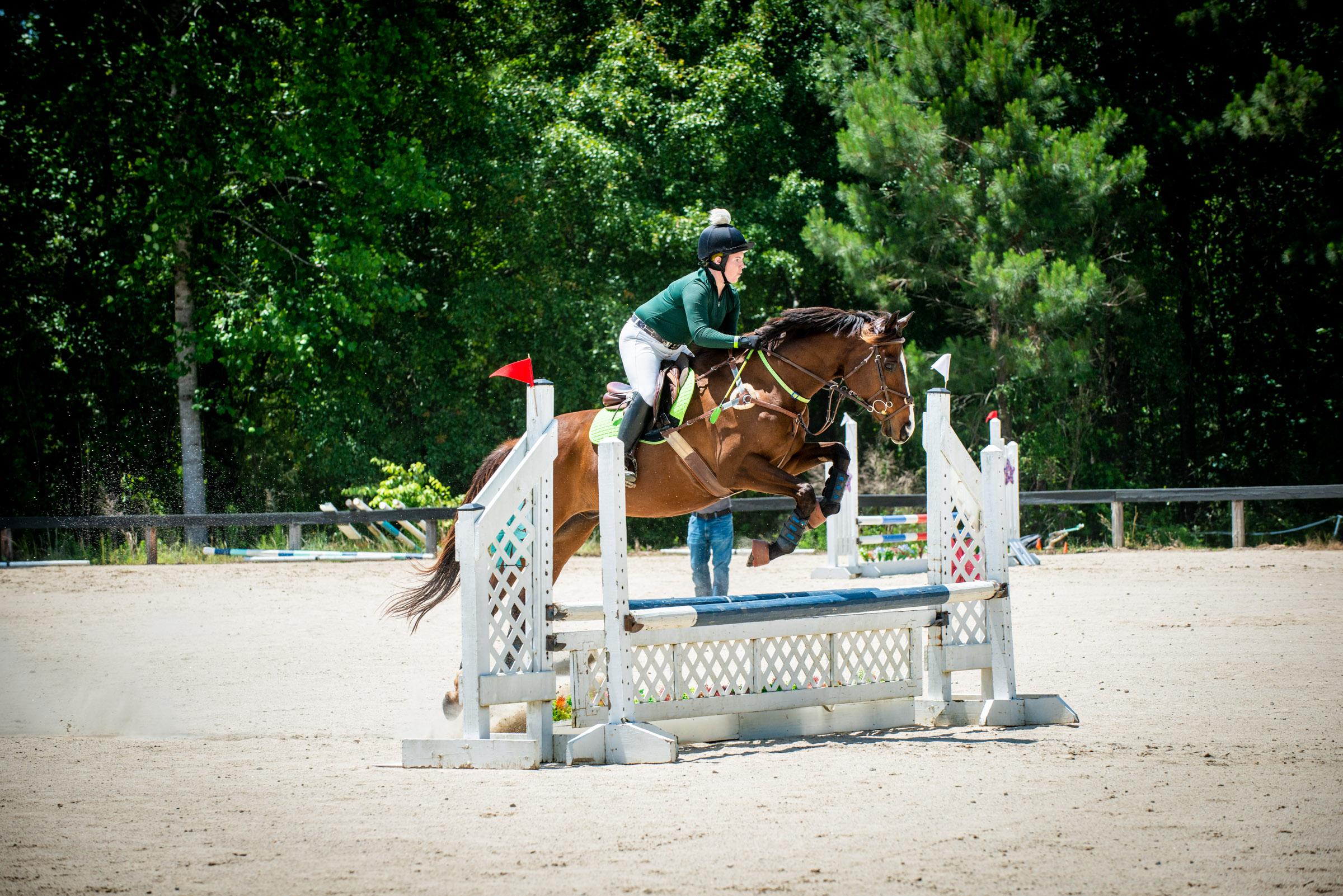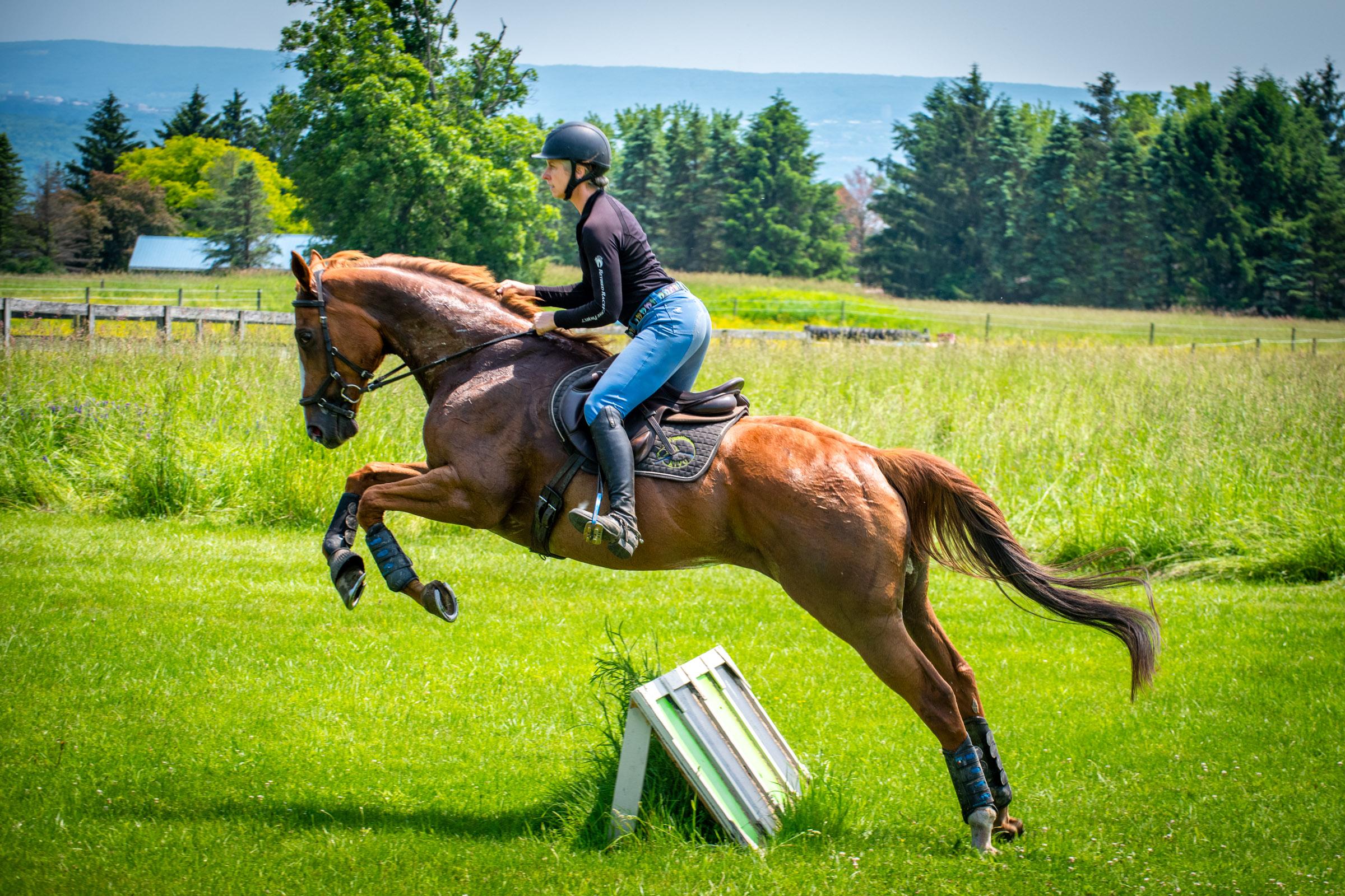 Indy (Star Player) has a few hind end accommodations — requiring a bit of maintenance and understanding of how he has to travel to feel his best. But if I don’t pick, and if I let him travel forward to the jumps, he clears them with brilliance. Photo by Izzy Gritsavage.