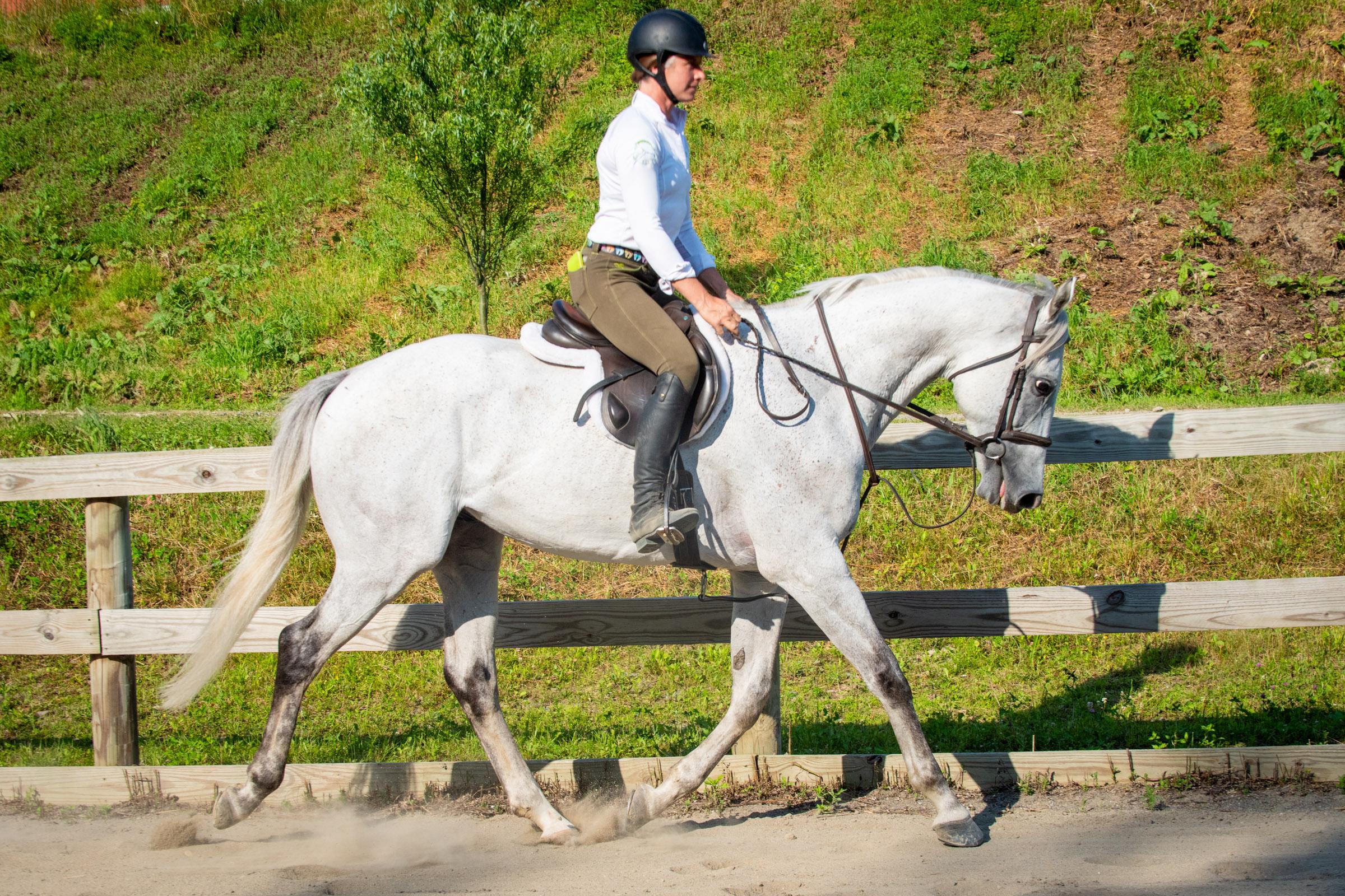 There’s not much accommodation needed with Starship Augusto other than to not lock down on him with your heels and hands. Whether a rider is 12 or 60, he’ll travel like this if given space to move forward. Photo by Lily Drew.