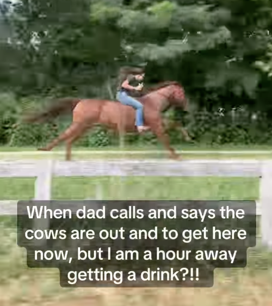 We won’t lie, we’re pretty impressed with this rider’s balance. In fact, we’re pretty sure that she can round up the cows in exactly this get up — and not spill a drop. Thanks for this, Instagrammer Jay W.