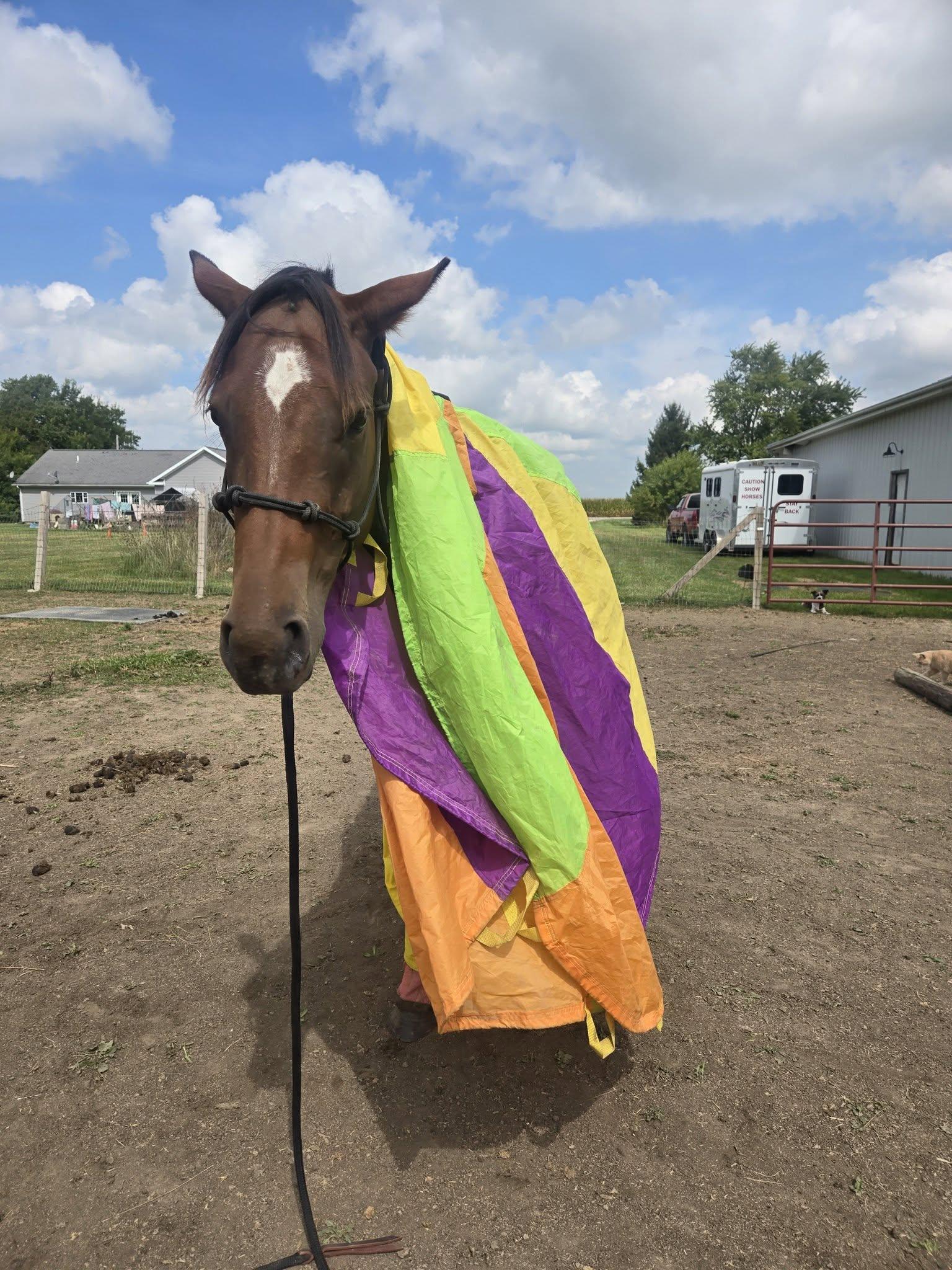This week we asked to see photos of your horse being desensitized. Enjoy these five entertaining photos of exactly that!