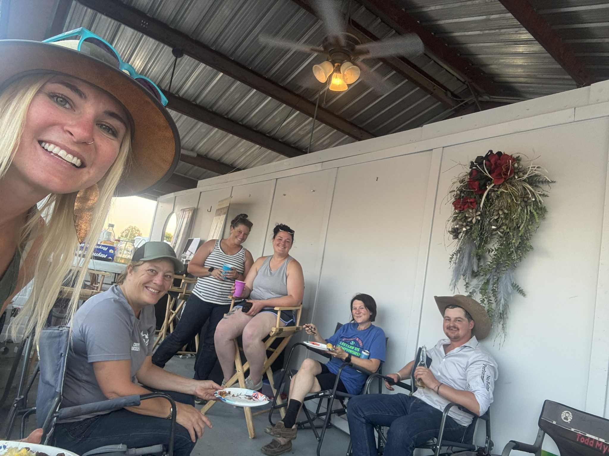 Surrounded, and having a group dinner, with some of the best equestrians I know. Photo by Marcella Gruchalak