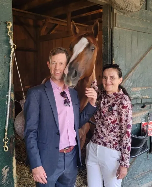 Trainer Jerry O’Dwyer and owner Delia Nash at the Saratoga Racetrack in New York in 2022. Photo courtesy of Delia Nash.