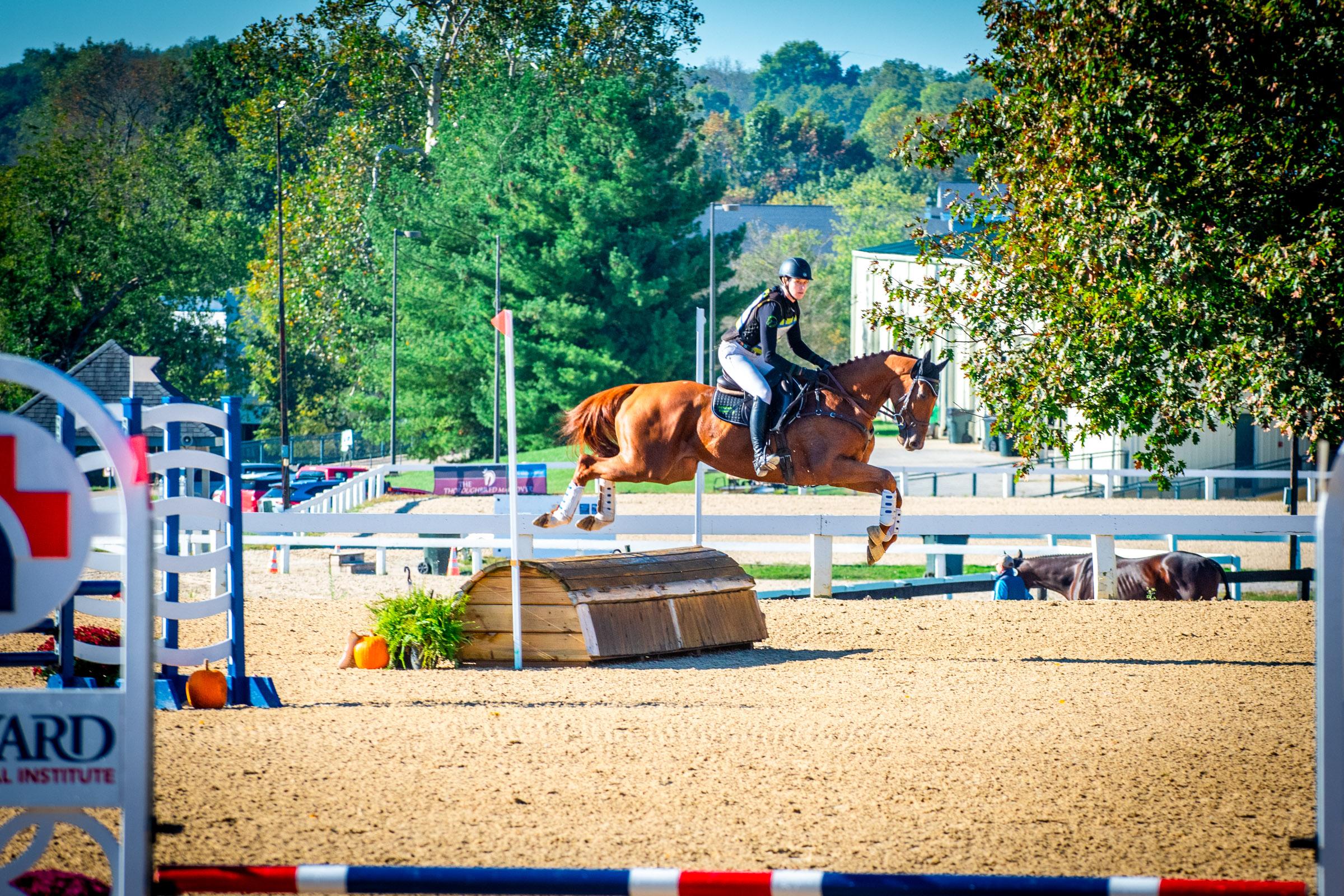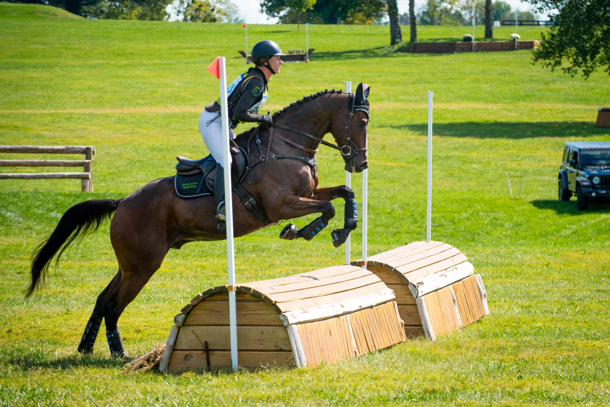Artie jumping an xc element in the eventing championship at the Makeover. Photo by Aly Ratazzi Jones.