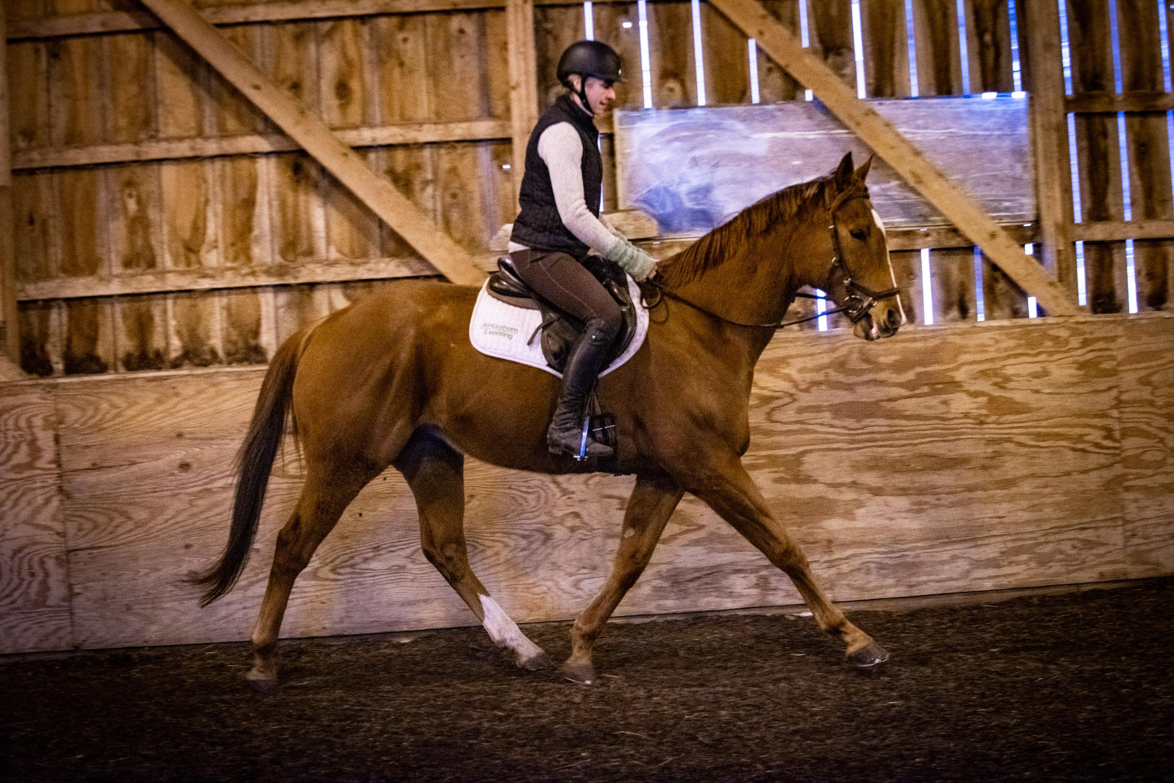 Artie came off the track last fall and was lucky enough to land himself with Sarah Hepler, a Thoroughbred enthusiast and dressage rider. I helped get him restarted, and when Artie made it clear that he’d rather jump than pursue straight dressage, Sarah brought him to me to consign. Fast forward a few months and it didn’t take much to have him clicking like a metronome around small courses inside and small xc courses in the jump field. The feel was so good and the market so plain stupid (no one wanted a “little” –16hh — red seven year old) that I ended up picking him up for my string and bringing him along.