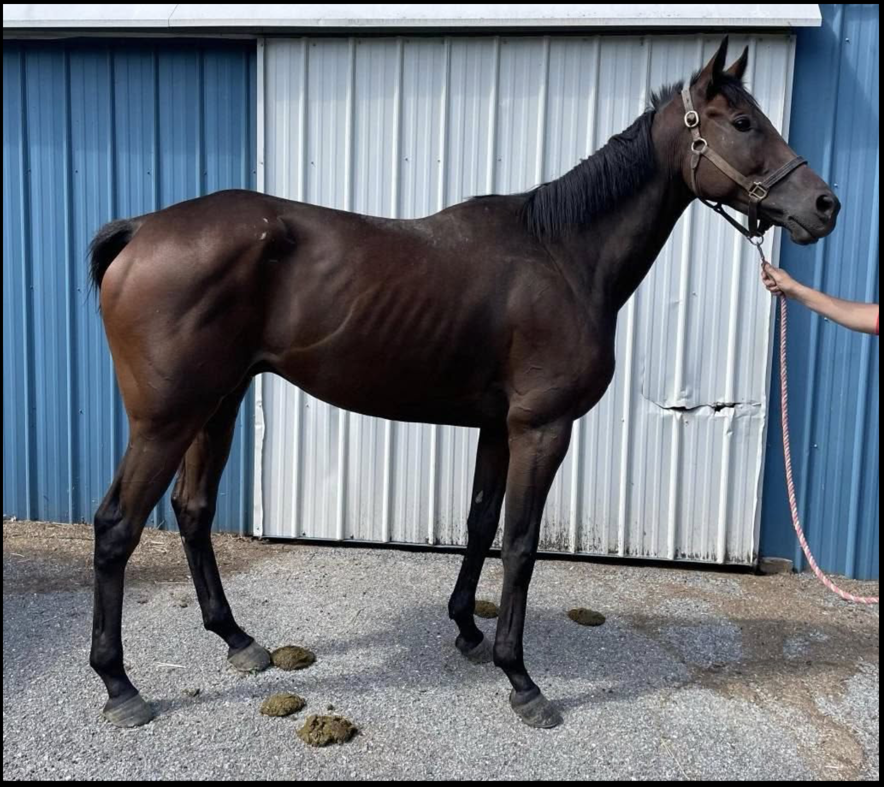 Emmett’s (Oboy) photo from the track about the time when Larissa Lafebure rehomed him and gave him a shot at a different life. Photo courtesy of Larissa Lafebure.