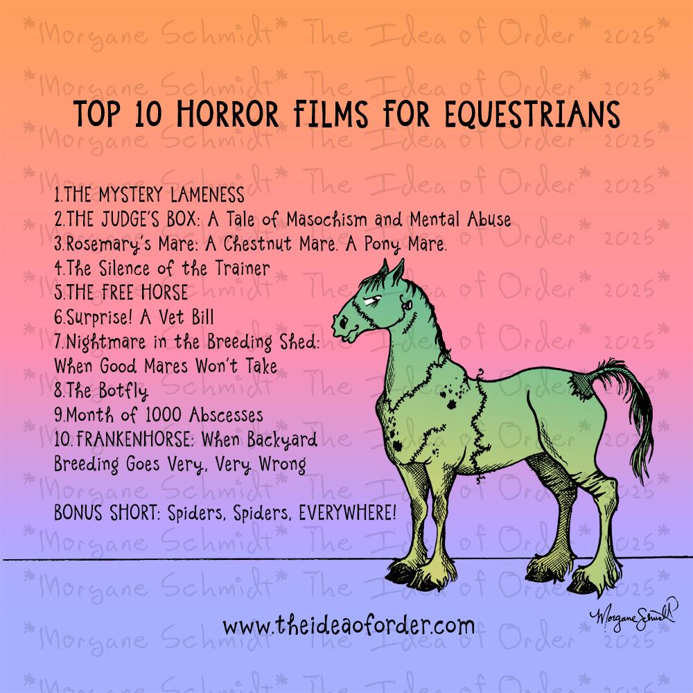 In keeping with my favorite season, here is my top 10 list of potential horror movies that would appeal to the average, seasoned equestrian.