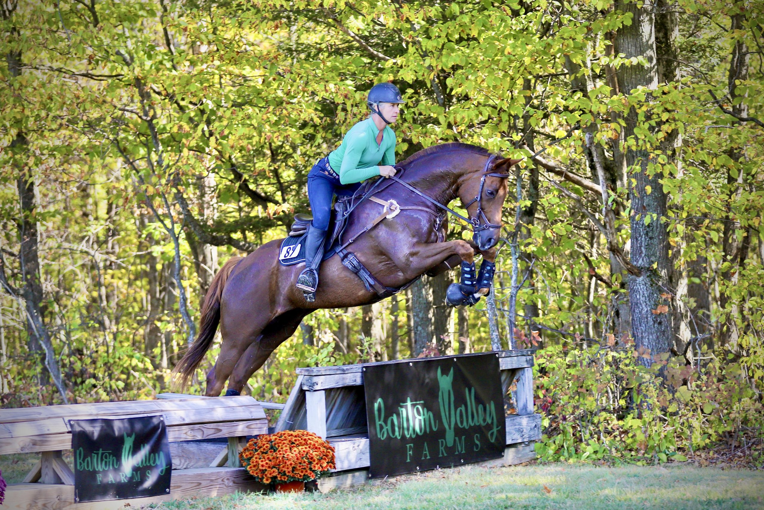 Indy (Star Player) is notoriously spooky around jumps, but keep his feet moving and point him at them, and you’re up and over. Photo by Olivia Arlene Photography.
