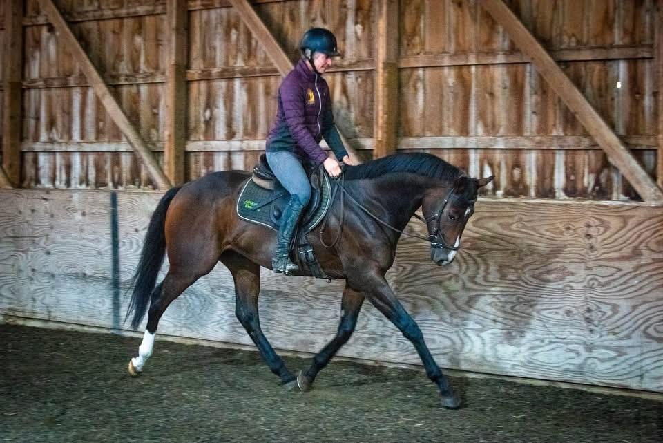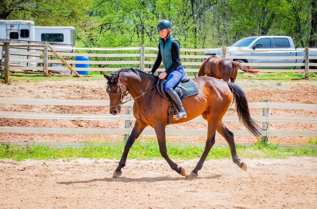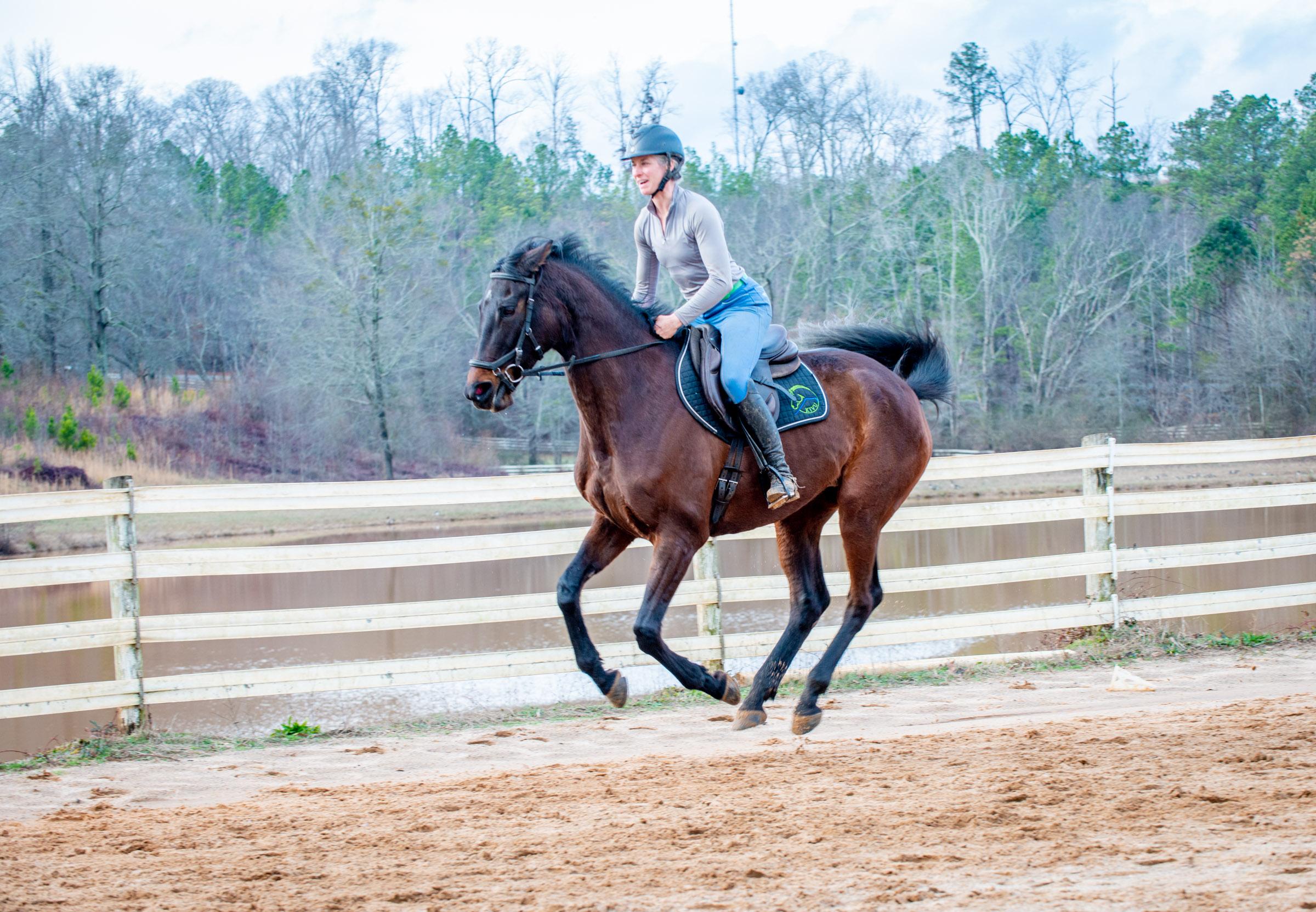 I have the privilege of getting to get to toss a leg over hundreds of Thoroughbreds. And I love the opportunity to try to figure them out. Many come in upside down, anxious, behind the leg, immature and often with limited boundaries. And it is a huge joy to get to listen to what they communicate and figure out how to make a ride work — how to get them to want to travel the same way I want to travel, how to convince them that using their hind end feels better and will make everything else easier, and how to get them to take a breath, to figure out what their quirks and limits are and their likes and dislikes so that I can get them into the right discipline and to the right home. It is a daily puzzle that keeps my way-overactive brain switched on and clicking.