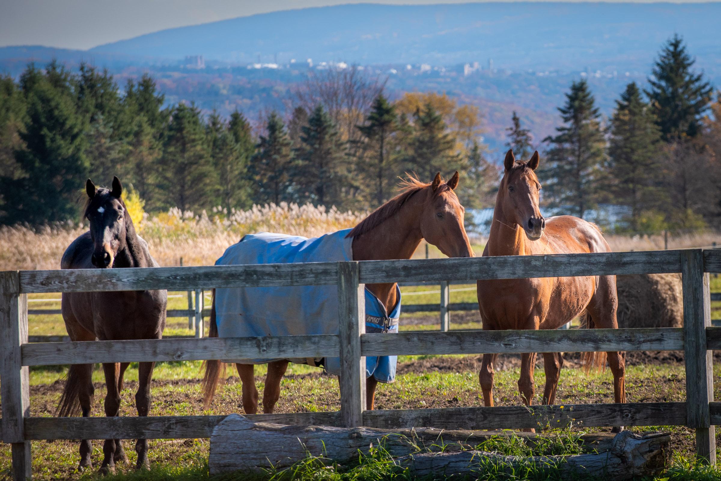 Three NOT survive-a-rides (one toddler and two of my favorite typically challenging OTTB rides), hanging out in the field at Kivu in New York. Photo by Lily Drew.