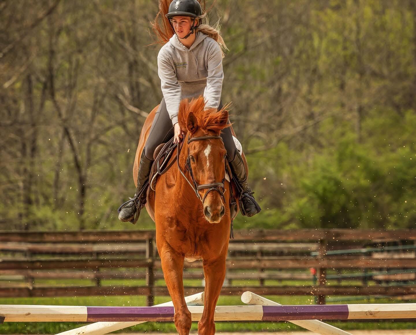 Forrest popping Adela Narovich around a course at his former lease home with Simmons Sporthorses in Talking Rock, GA. Photo by Dawn Light Photography.
