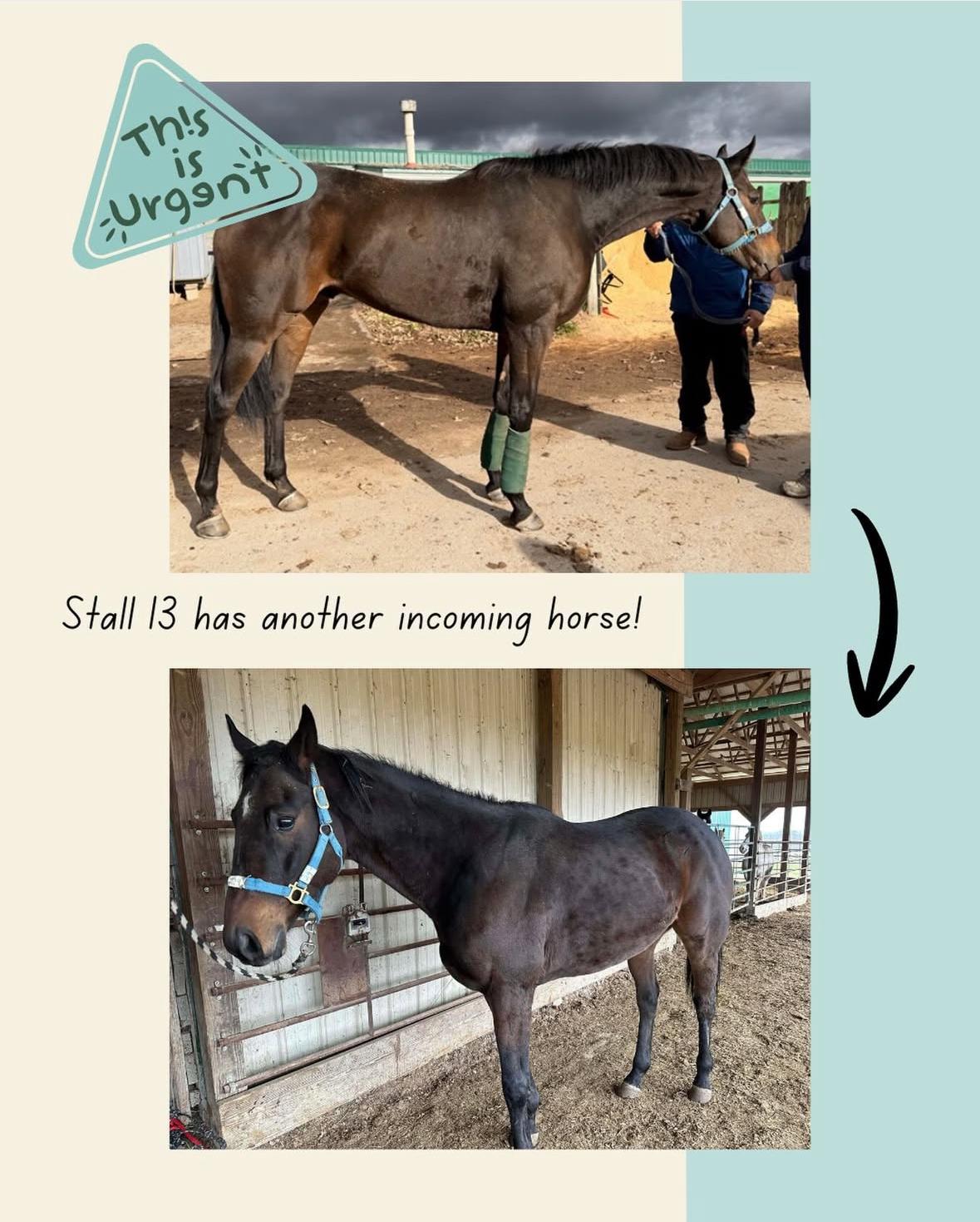 And this is where we come in. I had followed the story, but it had looked like Wine was all set — good to go — more necessary to just send a donation along to those who were going to take him on. On Sunday evening, Nov. 30th, my partner stepped away from the dinner table for a few minutes. I checked my phone. By the time he came back, I looked up and was like, “Well, I just made both of our lives a bit more complicated.” “What did you buy?” (He knows me too well). And so I explained that the non-profit I run, Stall 13 Thoroughbreds would be taking Wine. The only catch is that he’d need to quarantine.