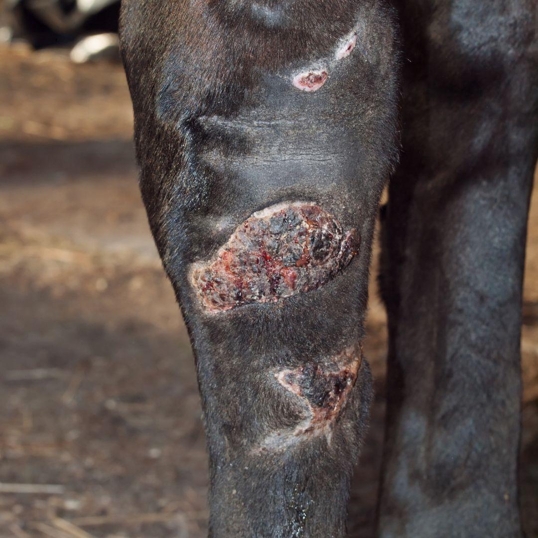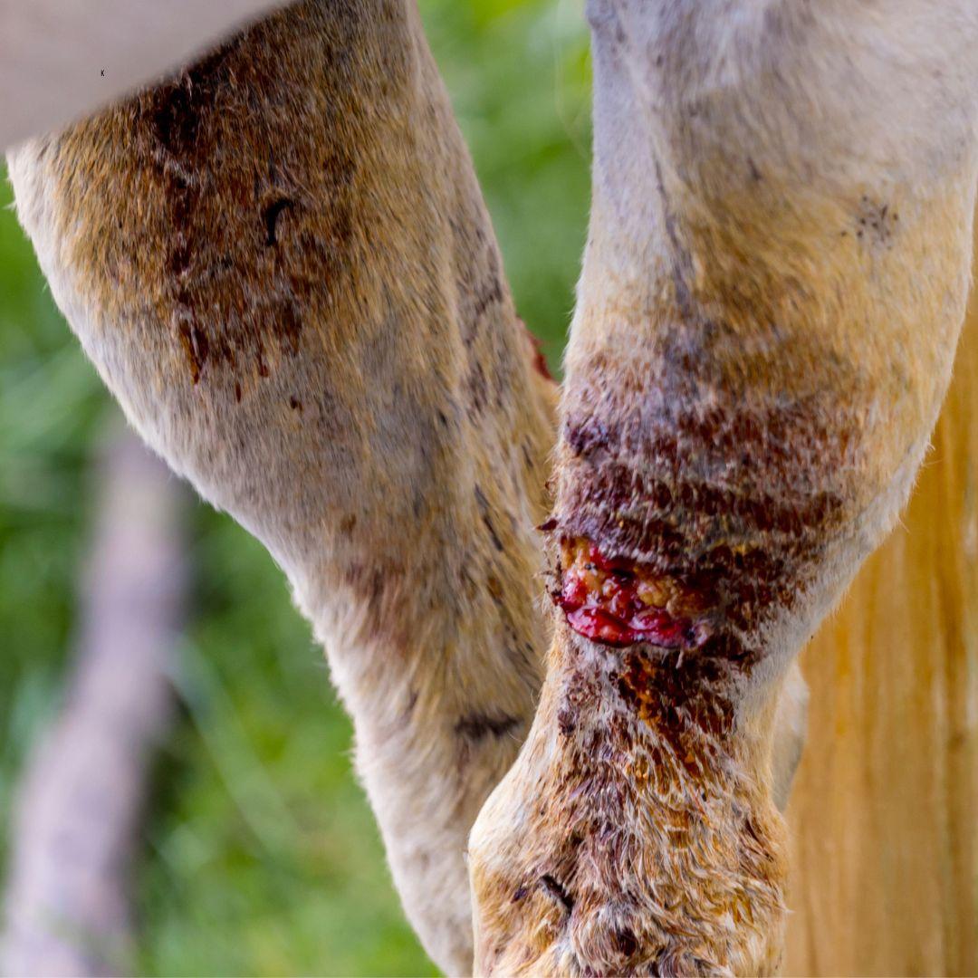 Proud flesh, medically known as exuberant granulation tissue, is an overgrowth of healing tissue that develops in some equine wounds, most commonly on the lower limbs. Unlike normal granulation tissue, which gradually fills a wound and allows skin to close over it, proud flesh continues to proliferate beyond the wound edges, physically preventing proper skin healing. Horses are particularly prone to this condition because of their unique wound-healing physiology, reduced blood supply in the distal limbs, constant motion, and frequent exposure to contamination. Factors such as delayed wound closure, infection, excessive inflammation, and repeated trauma can all trigger or worsen its development. Proud flesh notoriously is difficult to treat because once it forms, it perpetuates a cycle of inflammation and delayed epithelialization, often requiring prolonged management, meticulous wound care, and sometimes surgical intervention to restore normal healing.