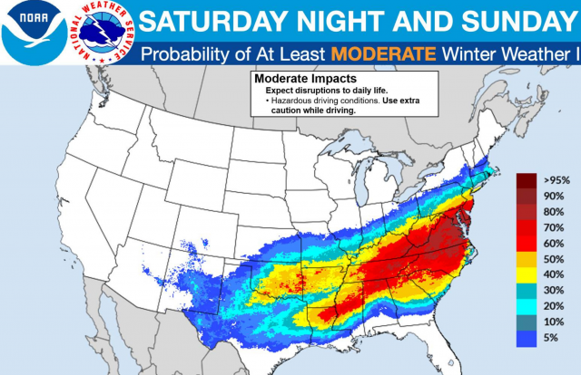 • Heavy snow is possible Saturday into Sunday, with the storm tied to a massive winter system sweeping much of the Eastern U.S. this weekend.