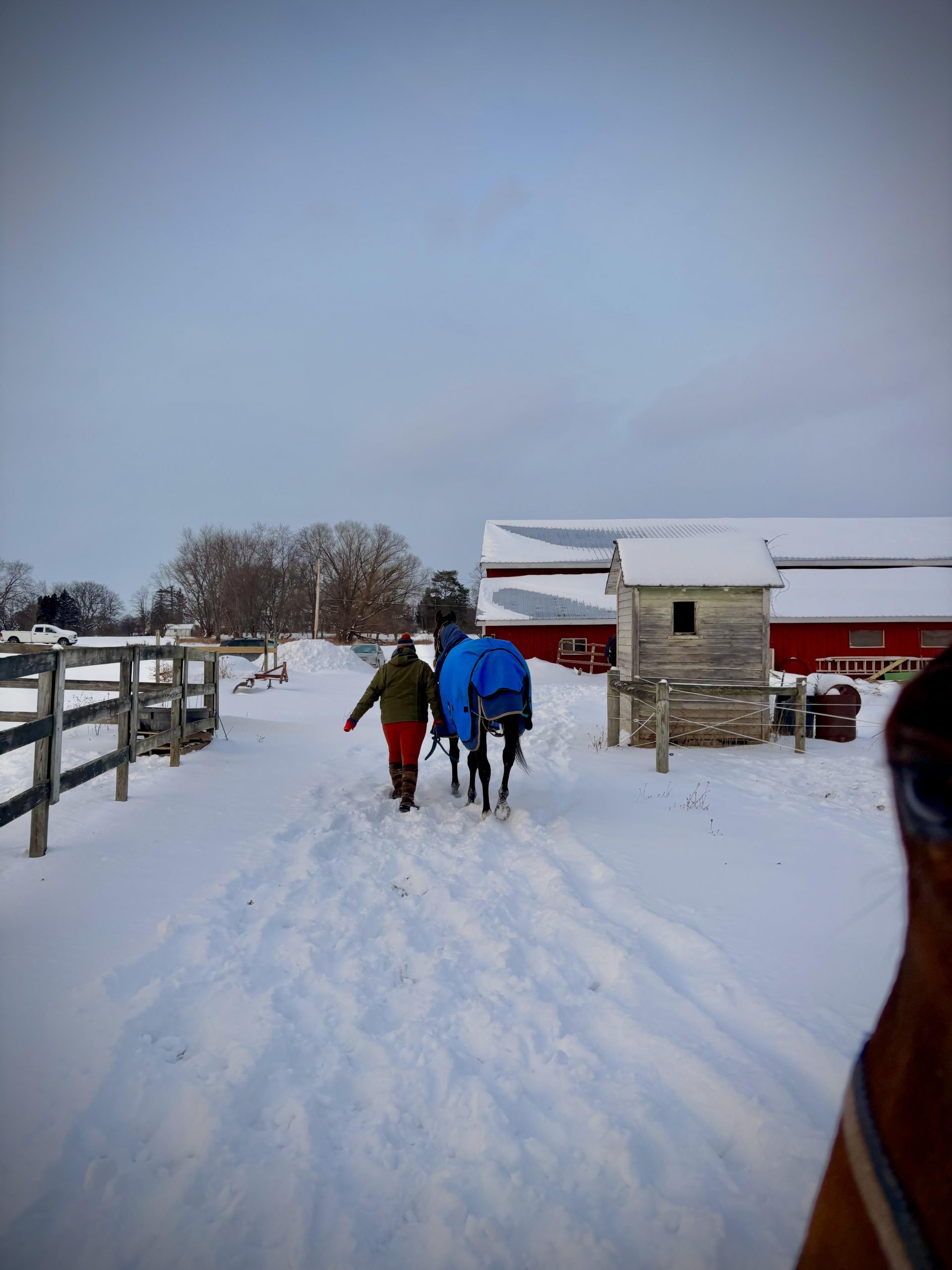 “When temps plunge into the negatives, wind chill cuts well below that, and we have more horses than stalls, you have to get creative… and a flexible and endless amount of energy, also known as: stubbornly doing the best I can.”