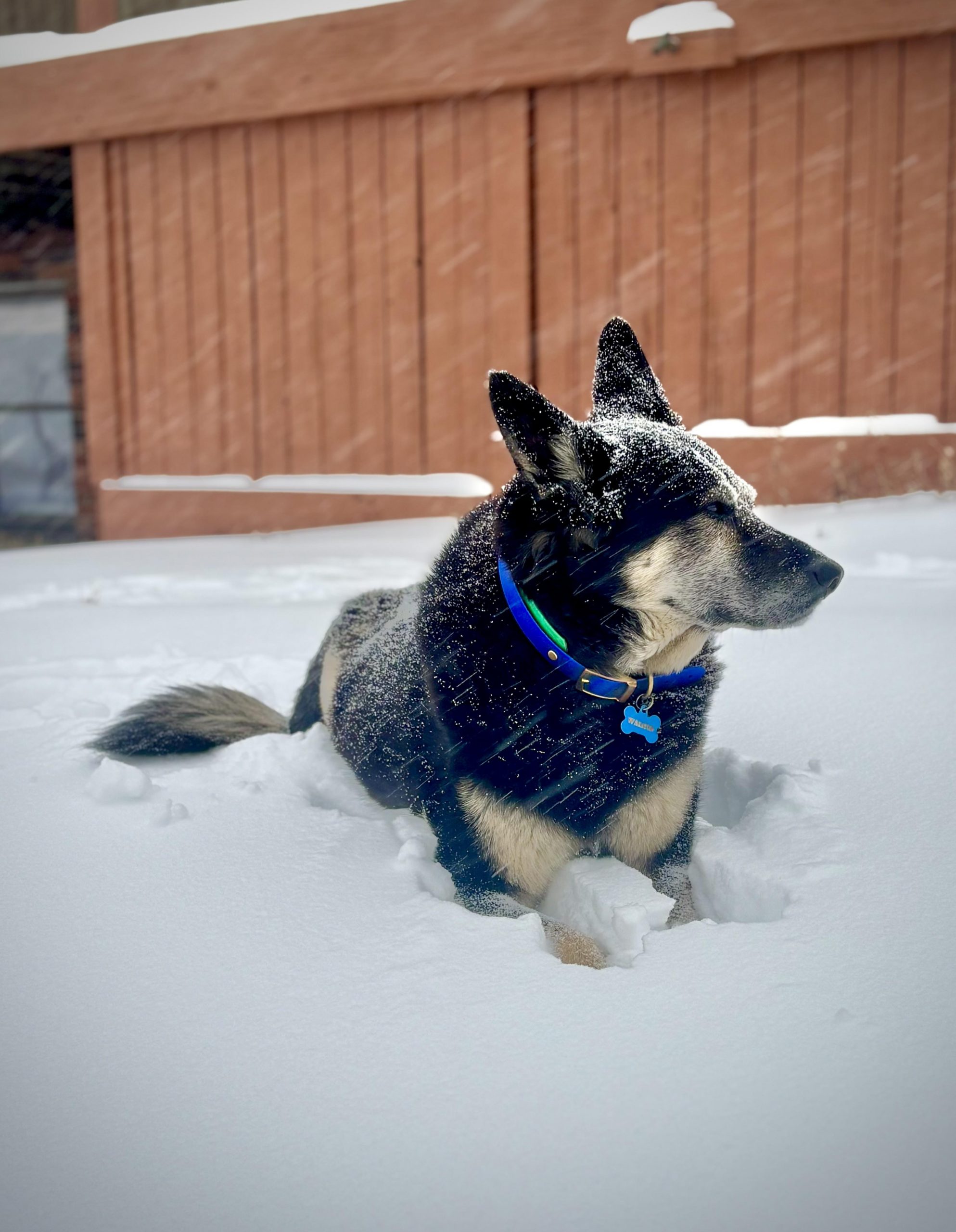 The only critter who doesn’t dislike winter that much is Walker. Photo by author.