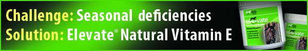 If your horse is stiff during warm-up, sore after work, lacking energy, and/or struggling to develop topline muscling, he could have a vitamin E deficiency. Elevate® is a highly bioavailable source of natural vitamin E that is preferentially absorbed and retained in a horse’s tissues compared to synthetic versions. Ask your veterinarian about supplementing with natural vitamin E.