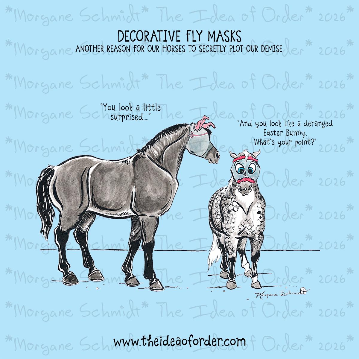 Morgane Schmidt is, among many things, an equestrian who still hasn’t quite decided what she wants to be when she grows up. Author of Life with Horses Is Never Orderly, she knows all about the madness that comes with the equine territory, having owned and competed horses in eventing and dressage for years. A lifelong fan of the classic equestrian cartoons penned by internationally renowned artist Norman Thelwell, she began her own comic series in 2011, sharing deftly funny reflections on life with horses on Horse Nation as well as her personal website. A native Floridian, she spent a decade in Reno, NV, where she was able to confirm her suspicion that snow is utterly worthless (she has since regained her sense and moved back to the Florida swamp). Though she has run the gamut of equestrian disciplines, her favorite is dressage. She has completed her USDF bronze and silver medals and is currently working on her gold. Generally speaking, her life is largely ruled by Woody, a 14.2 hand beastly quarter horse, Willie, a now beastly 16-year-old Dutch gelding, and Milona DG, a 9 year old KWPN chestnut mare (you can make your own inferences there…). Visit her website at www.theideaoforder.com.
