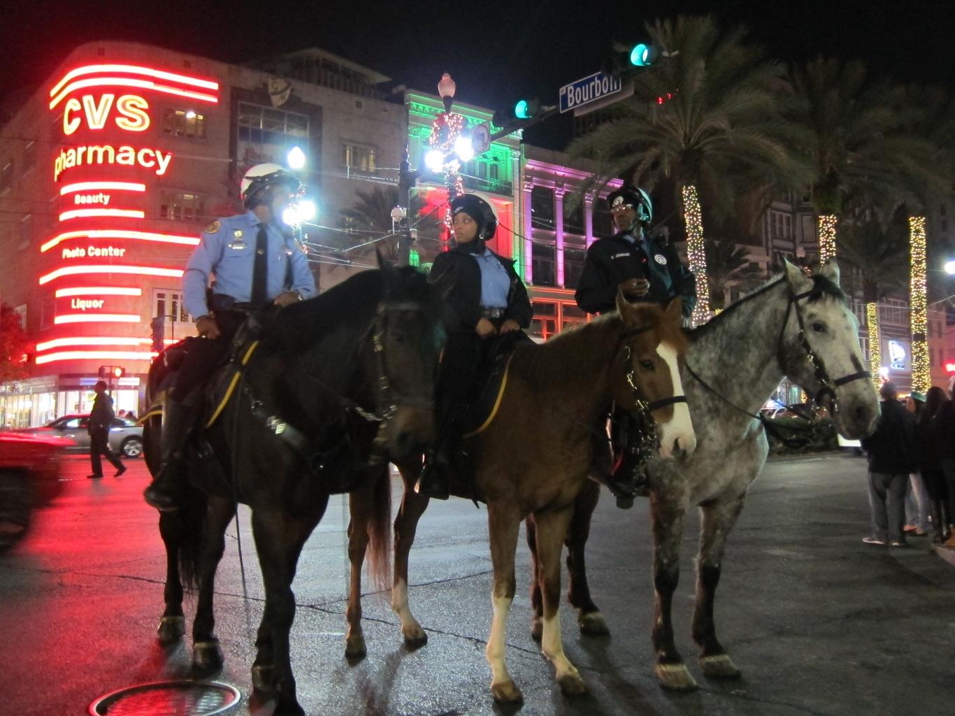 Bourbon & Canal, Mounted Police, New Orleans December 2014. Photo by snickclunk, CC BY 2.0, via Wikimedia Commons.
