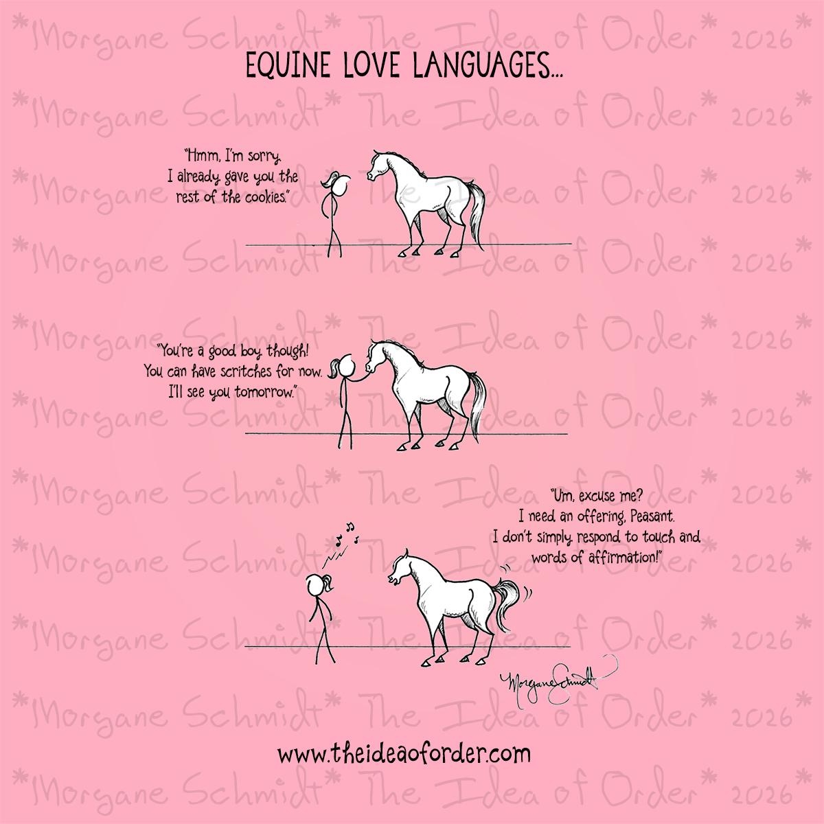 Morgane Schmidt is, among many things, an equestrian who still hasn’t quite decided what she wants to be when she grows up. Author of Life with Horses Is Never Orderly, she knows all about the madness that comes with the equine territory, having owned and competed horses in eventing and dressage for years. A lifelong fan of the classic equestrian cartoons penned by internationally renowned artist Norman Thelwell, she began her own comic series in 2011, sharing deftly funny reflections on life with horses on Horse Nation as well as her personal website. A native Floridian, she spent a decade in Reno, NV, where she was able to confirm her suspicion that snow is utterly worthless (she has since regained her sense and moved back to the Florida swamp). Though she has run the gamut of equestrian disciplines, her favorite is dressage. She has completed her USDF bronze and silver medals and is currently working on her gold. Generally speaking, her life is largely ruled by Woody, a 14.2 hand beastly quarter horse, Willie, a now beastly 16-year-old Dutch gelding, and Milona DG, a 9 year old KWPN chestnut mare (you can make your own inferences there…). Visit her website at www.theideaoforder.com.